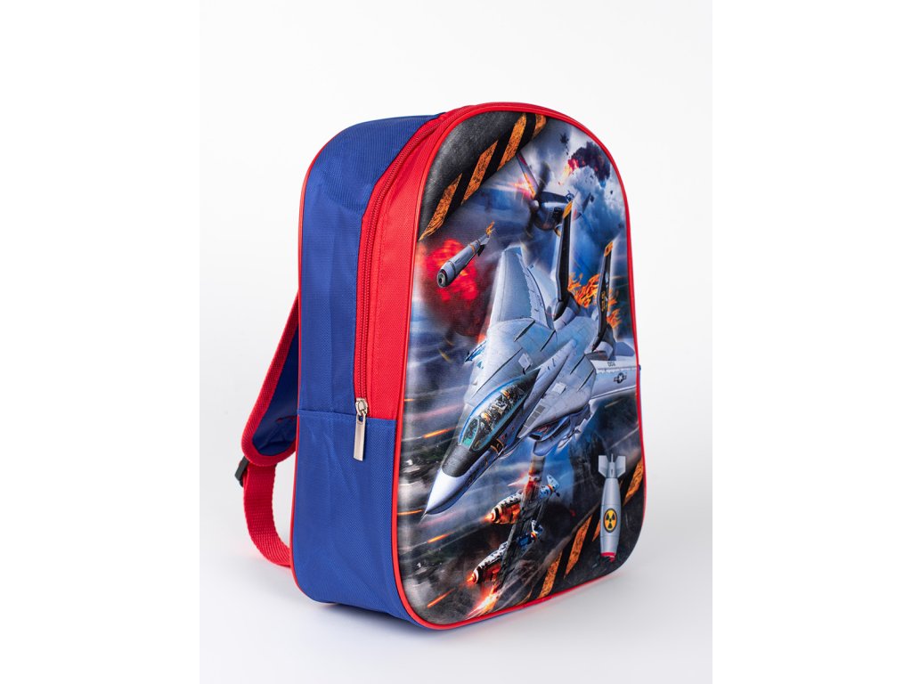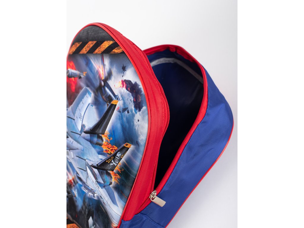 Modro-červený batoh pro kluka s vesmírnou lodí
