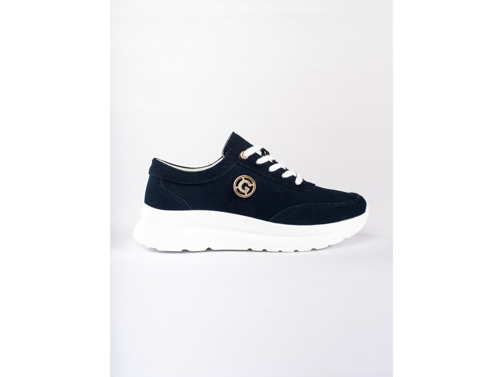 Tmavě modré kožené sneakersy na platformě