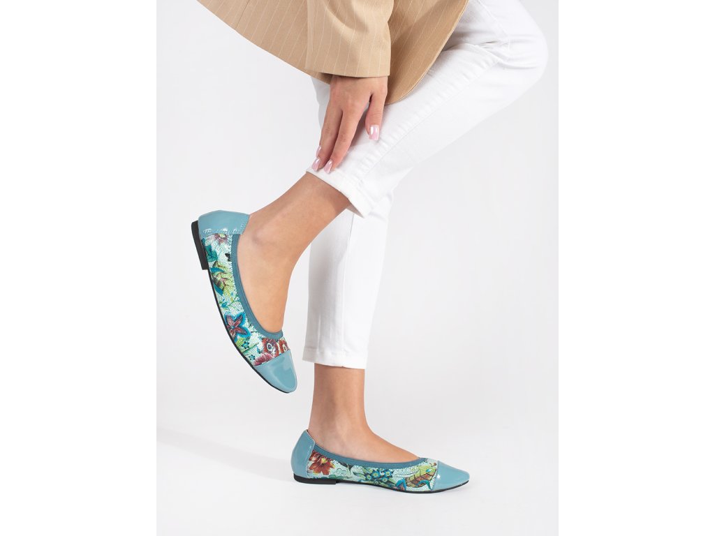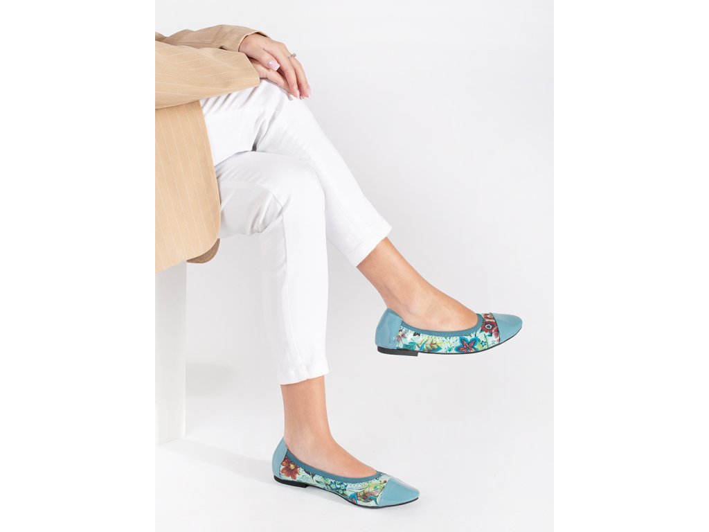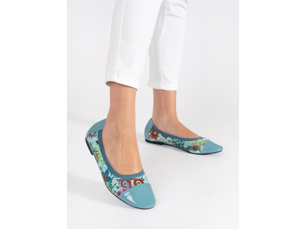 Baleríny s květinovým vzorem a lakovanou špičkou