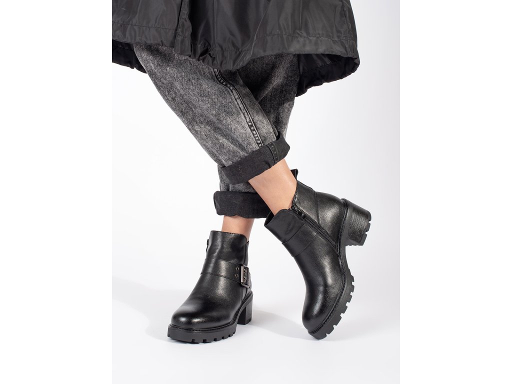 Černé kožené dámské kotníkové boty na podpatku s ozdobnou sponou Sergio Leone