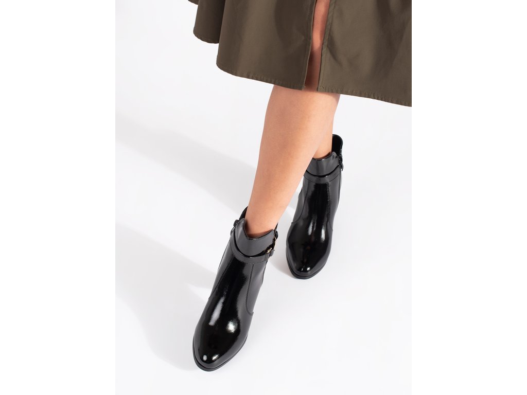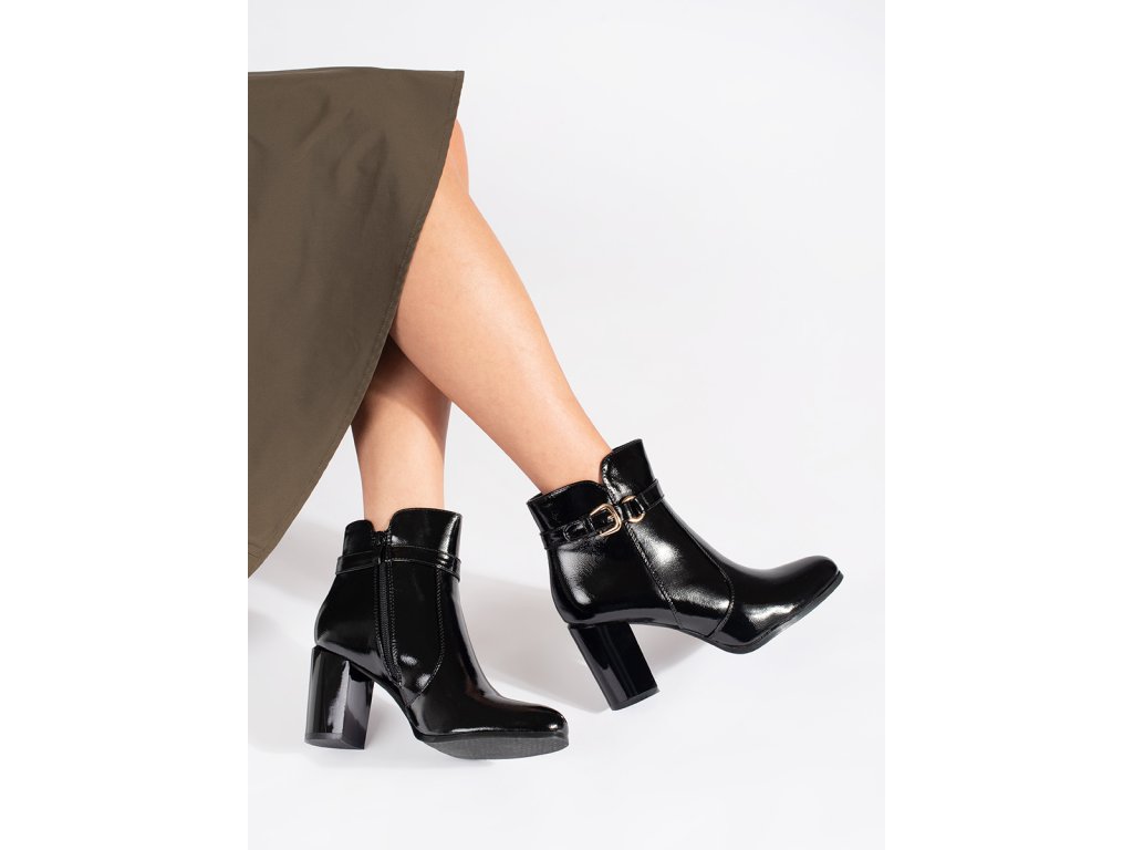 Černé lakované kotníkové boty na podpatku Sergio Leone