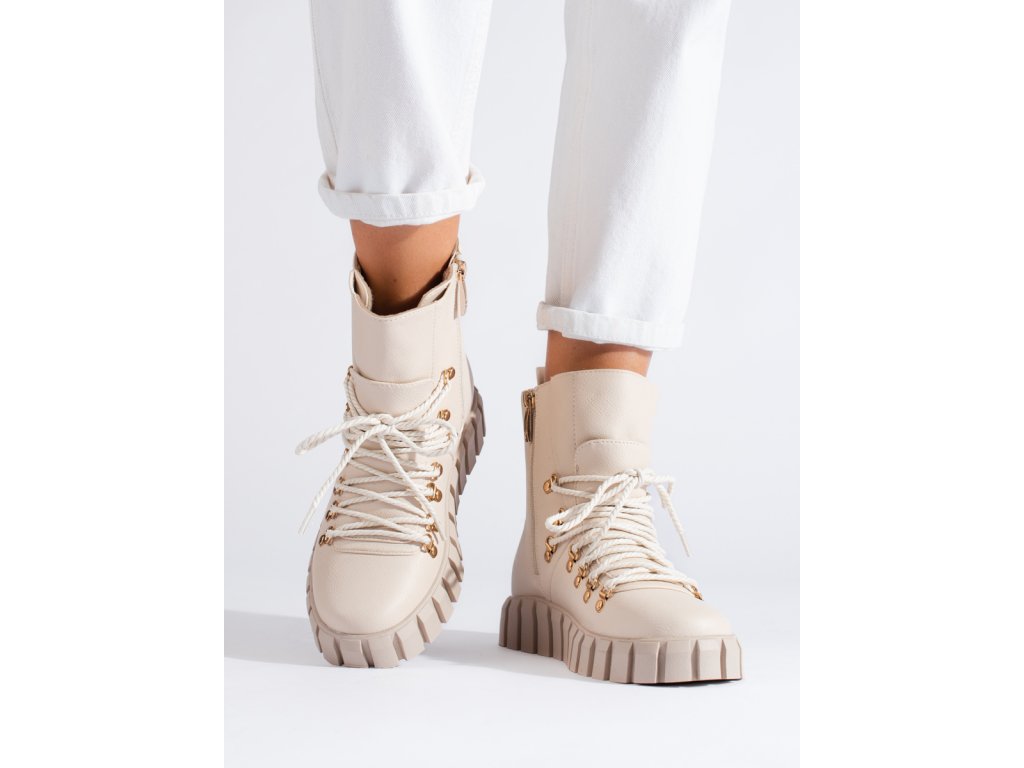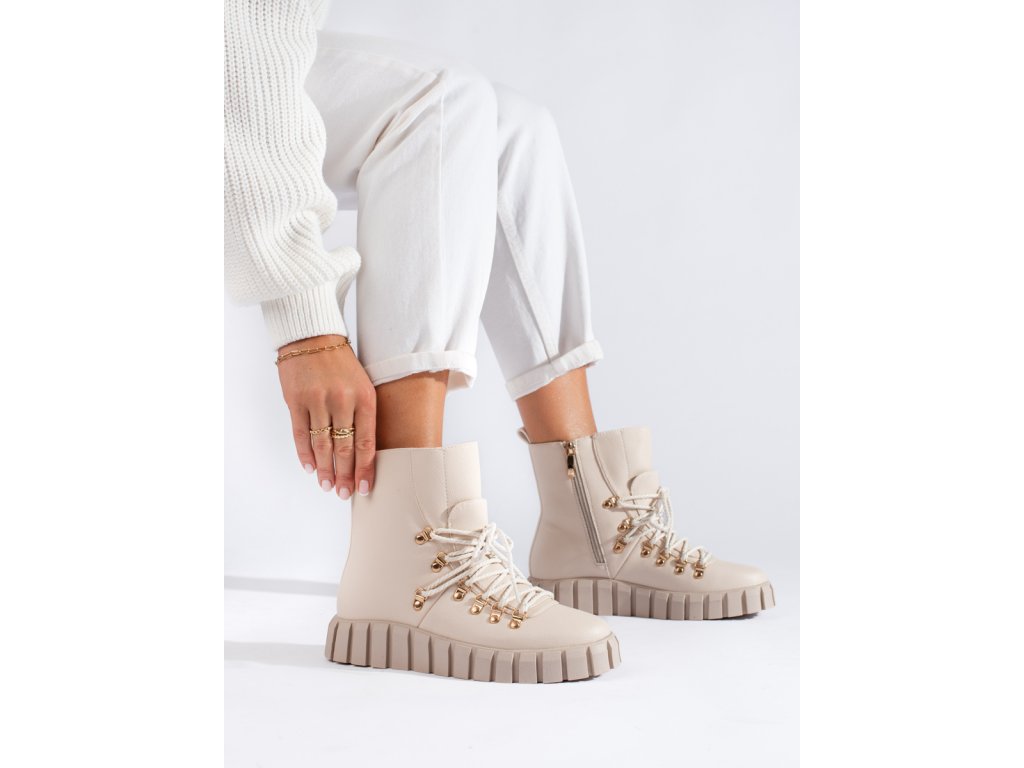 Dámské béžové zateplené kotníkové boty na platformě Potocki