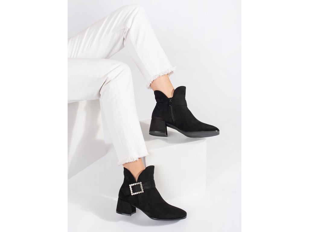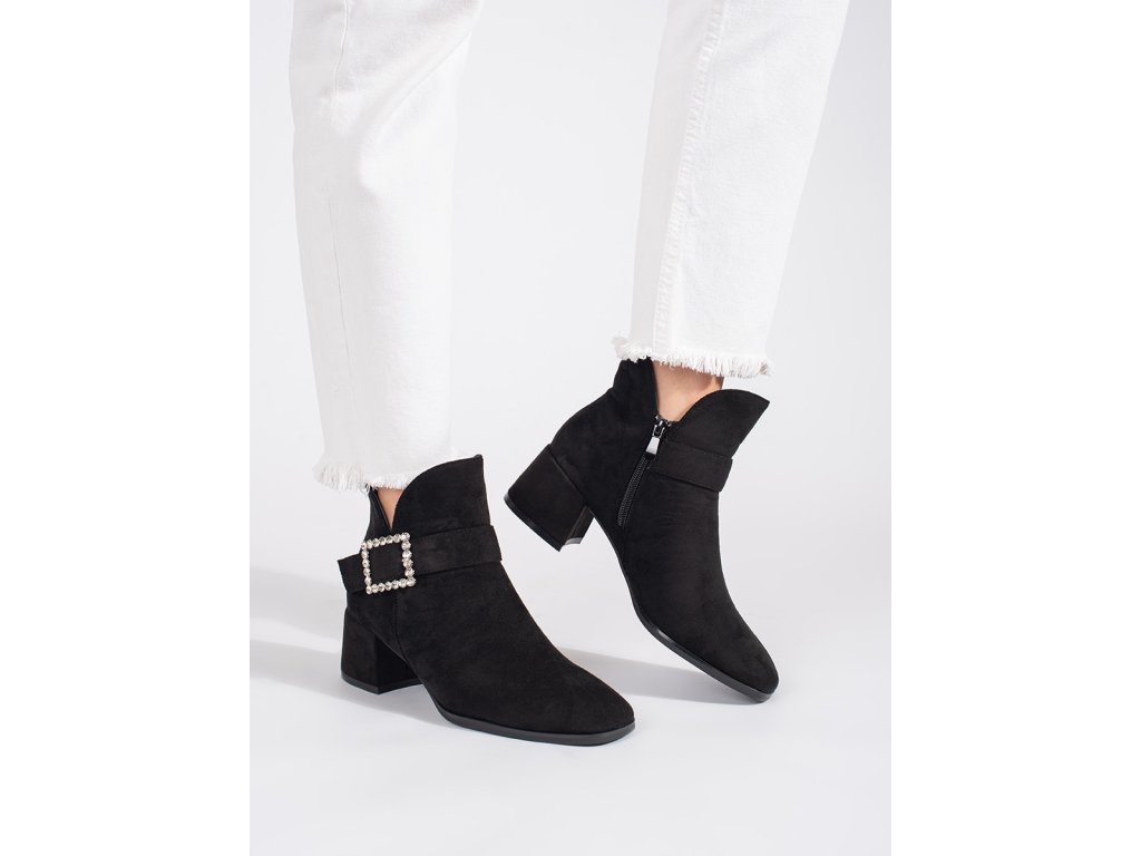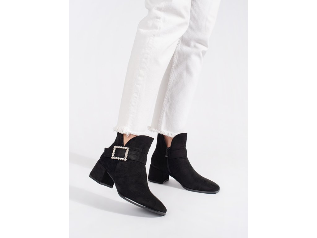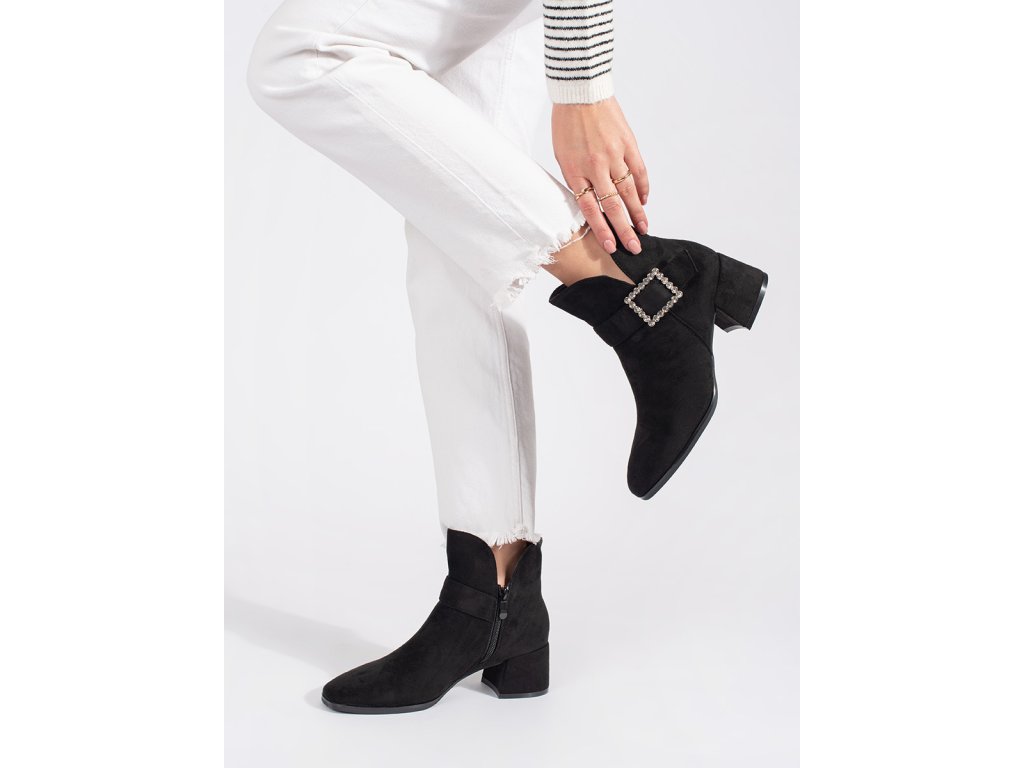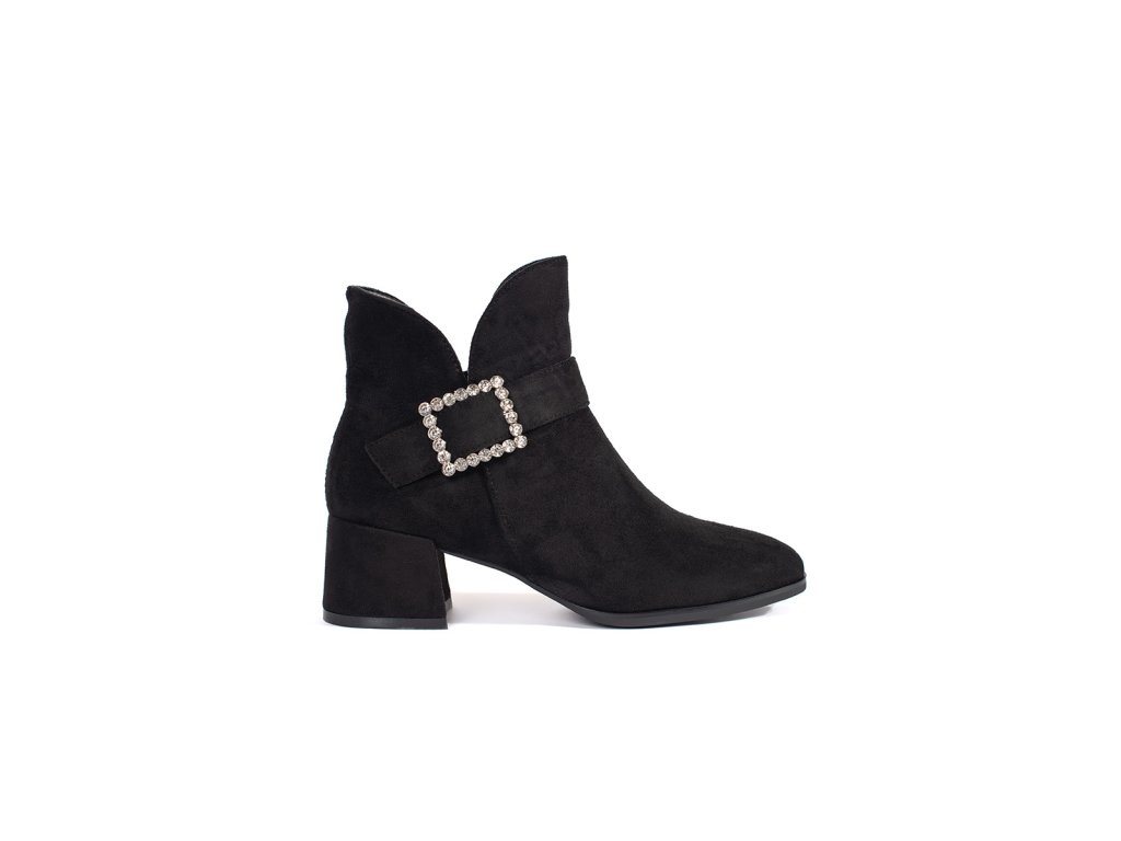 Dámské černé semišové kotníkové boty se stříbrnou přezkou