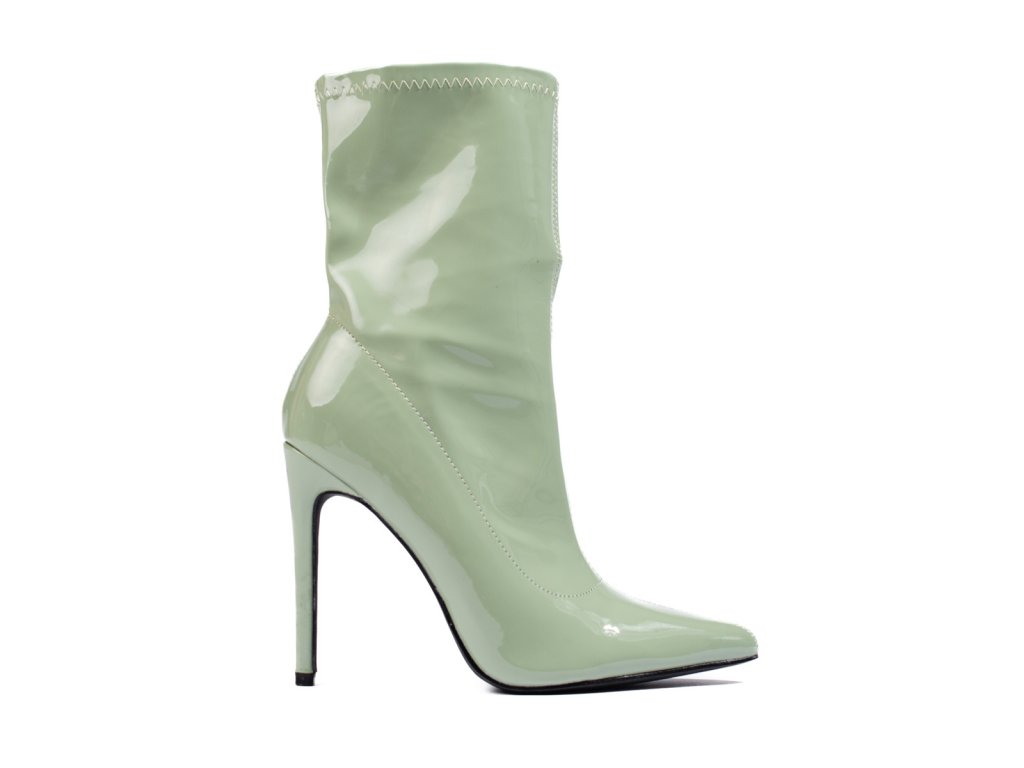 Dámské kozačky na jehlovém podpatku Shelovet z lakované ekokůže zelené