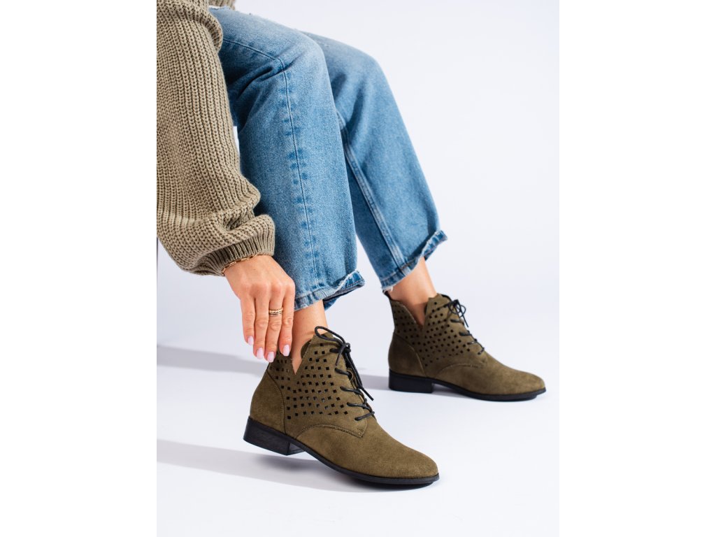 Děrované dámské kotníkové boty šněrovací Potocki zelené