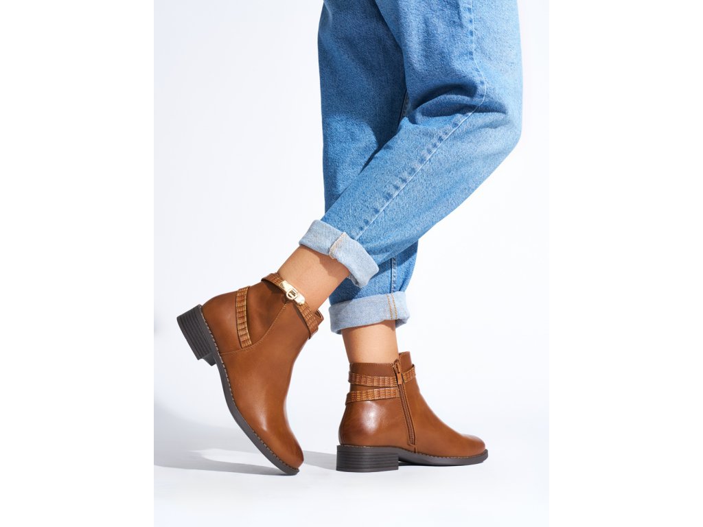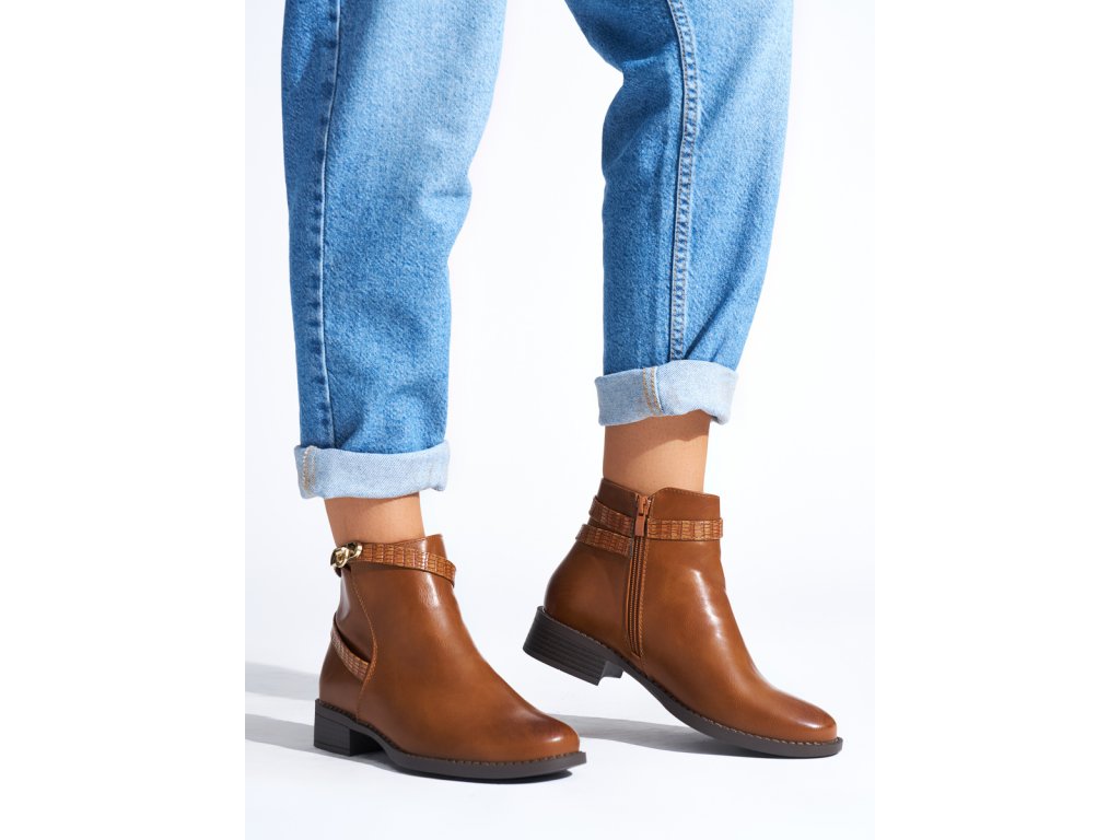 Hnědé kotníkové boty dámské na nízkém podpatku