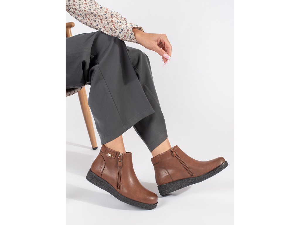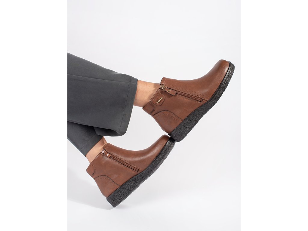 Hnědé kožené pohodlné kotníkové boty zateplené Sergio Leone