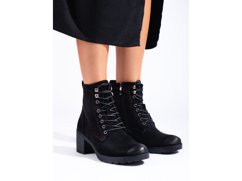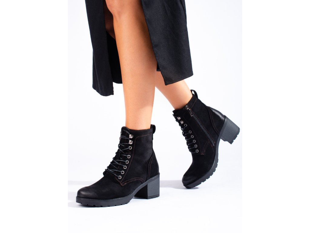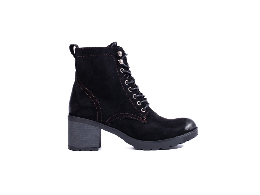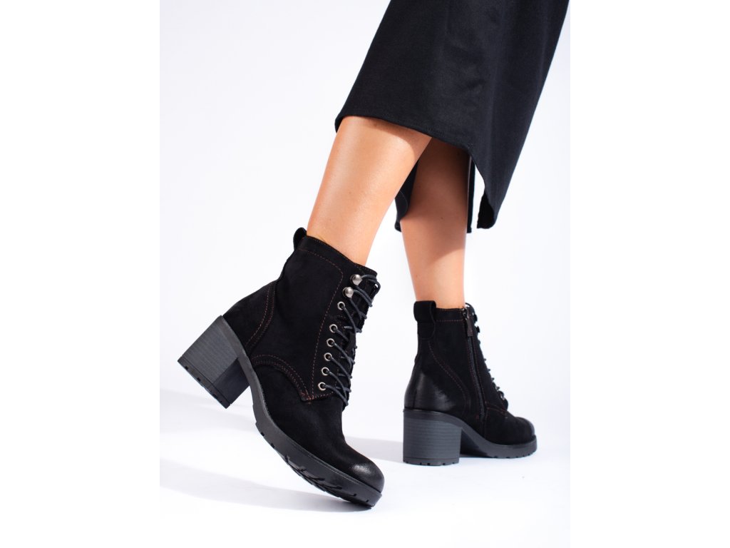 Šněrovací dámské členkové boty na podpatku Potocki z eko semiše