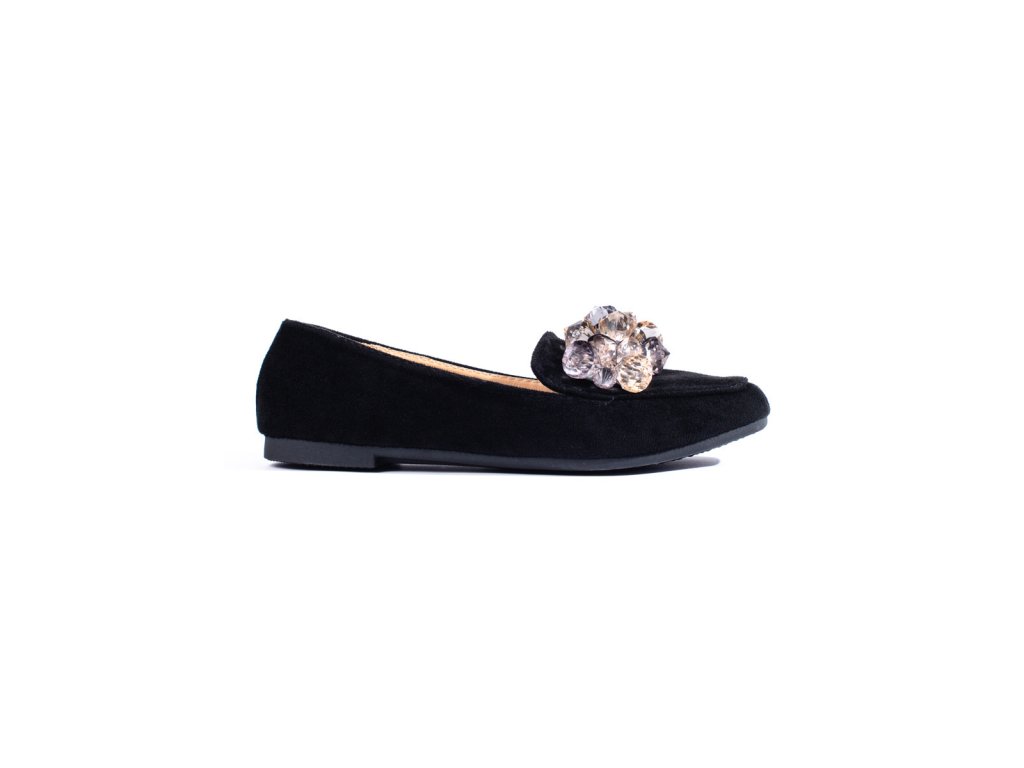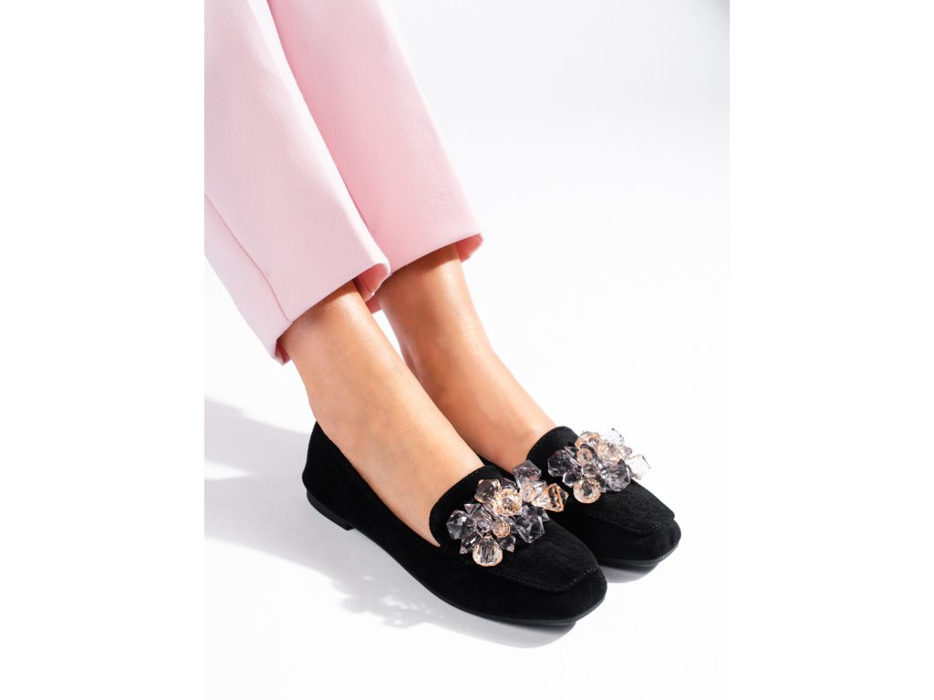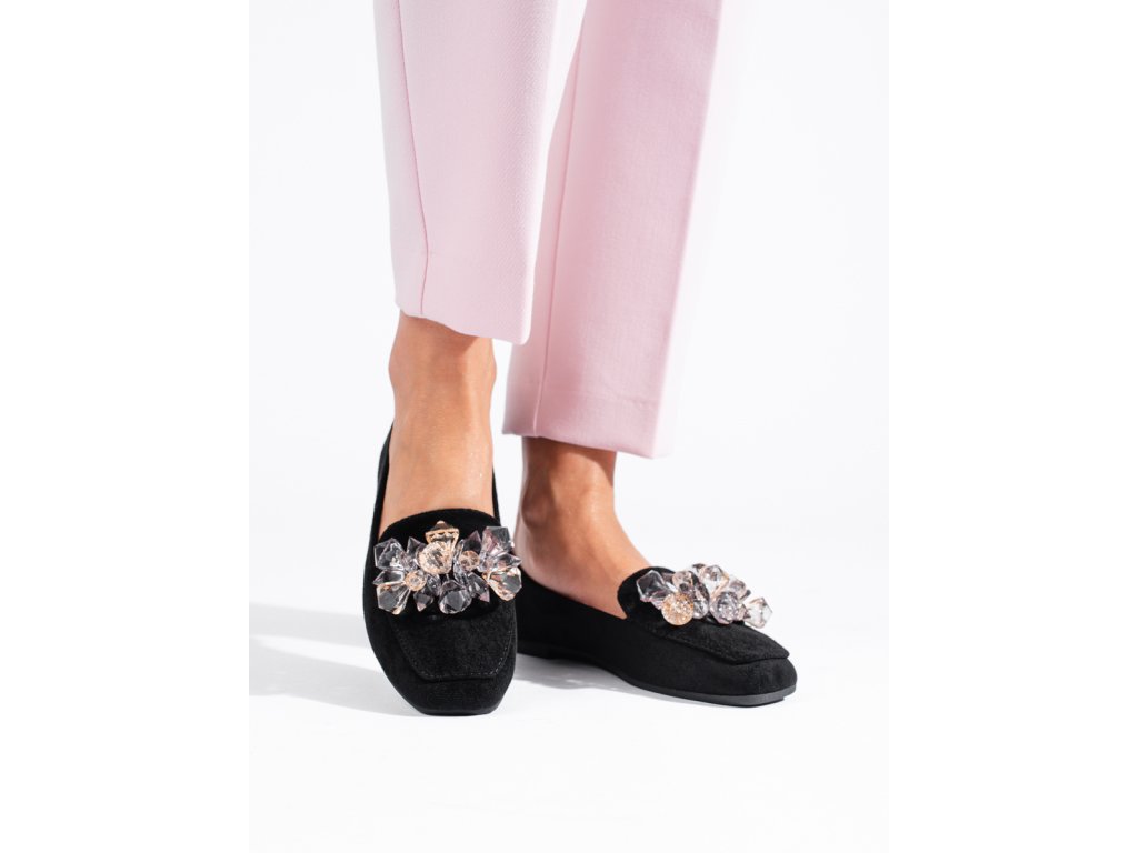 Černé semišové lordsy s ozdobnými krystalky Shelovet