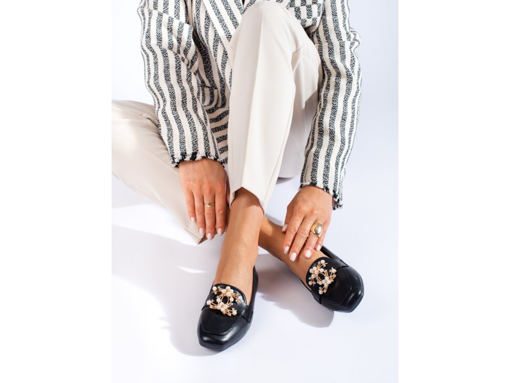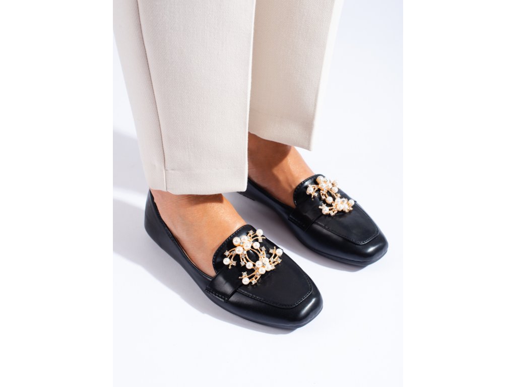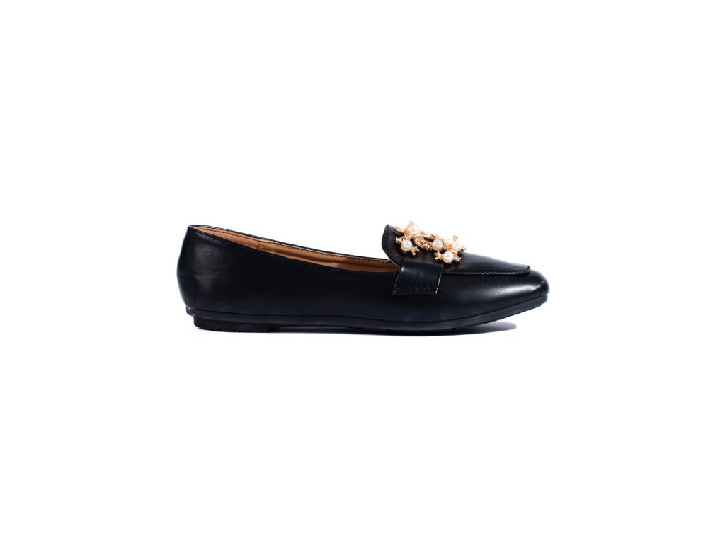 Černé dámské mokasíny se zlatou ozdobou Shelovet
