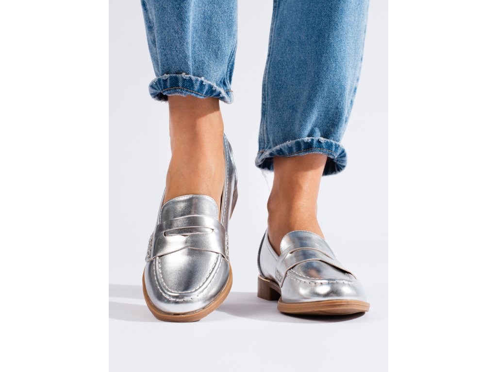 Dámské mokasíny z eko kůže stříbrné Shelovet