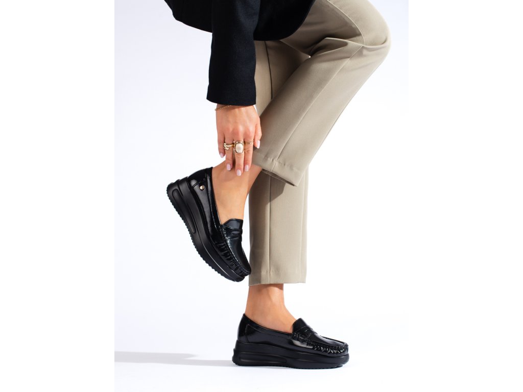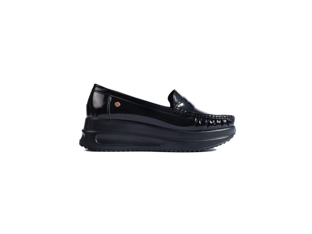 Lakované černé mokasíny na hrubé platformě Shelovet