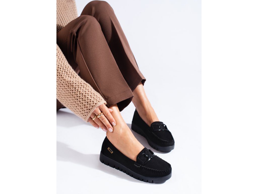 Semišové černé mokasíny na hrubé podrážce Shelovet