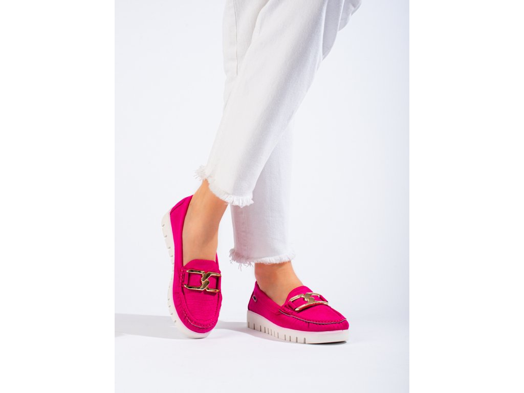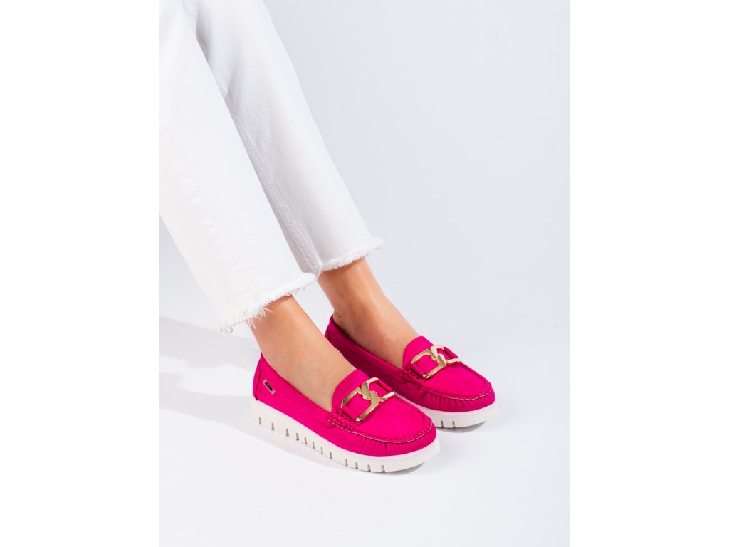 Semišové mokasíny na silné podrážce růžové Shelovet