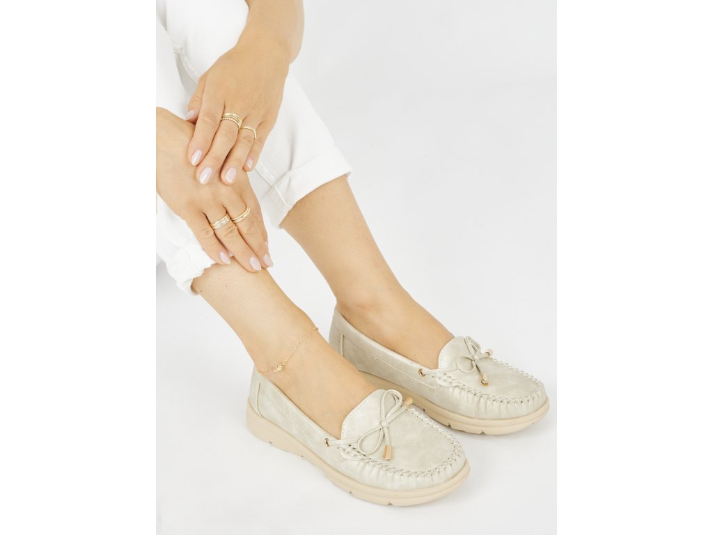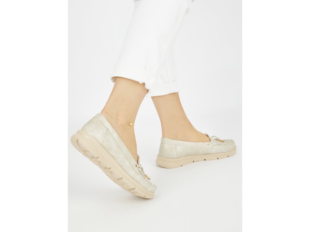 Zlaté pohodlné mokasíny z ekokůže
