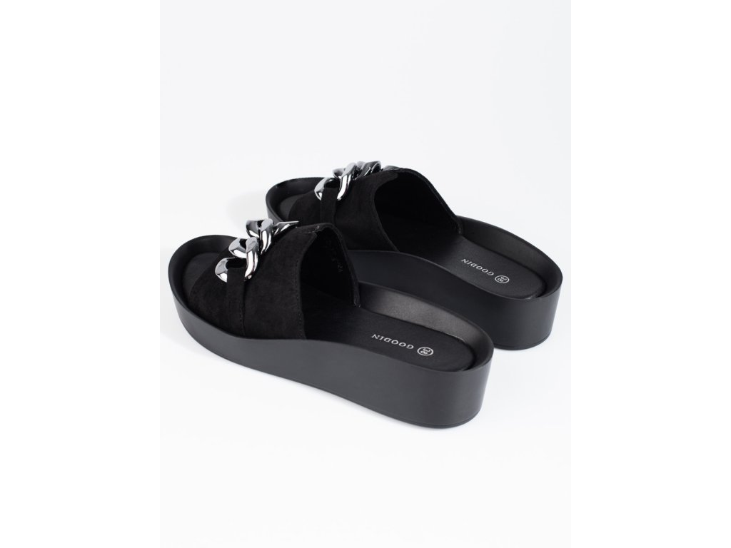 Pohodlné černé dámské pantofle Shelovet s řetízkem
