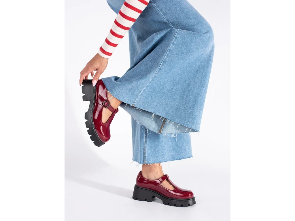 Bordové lakované dámské polobotky na platformě