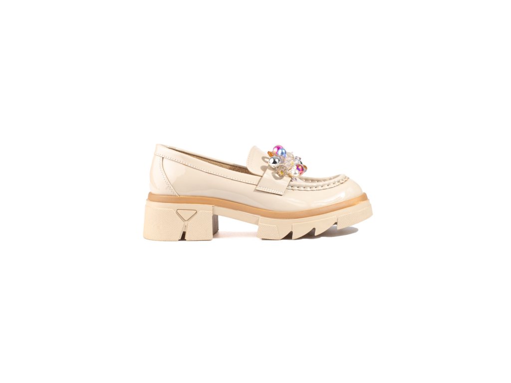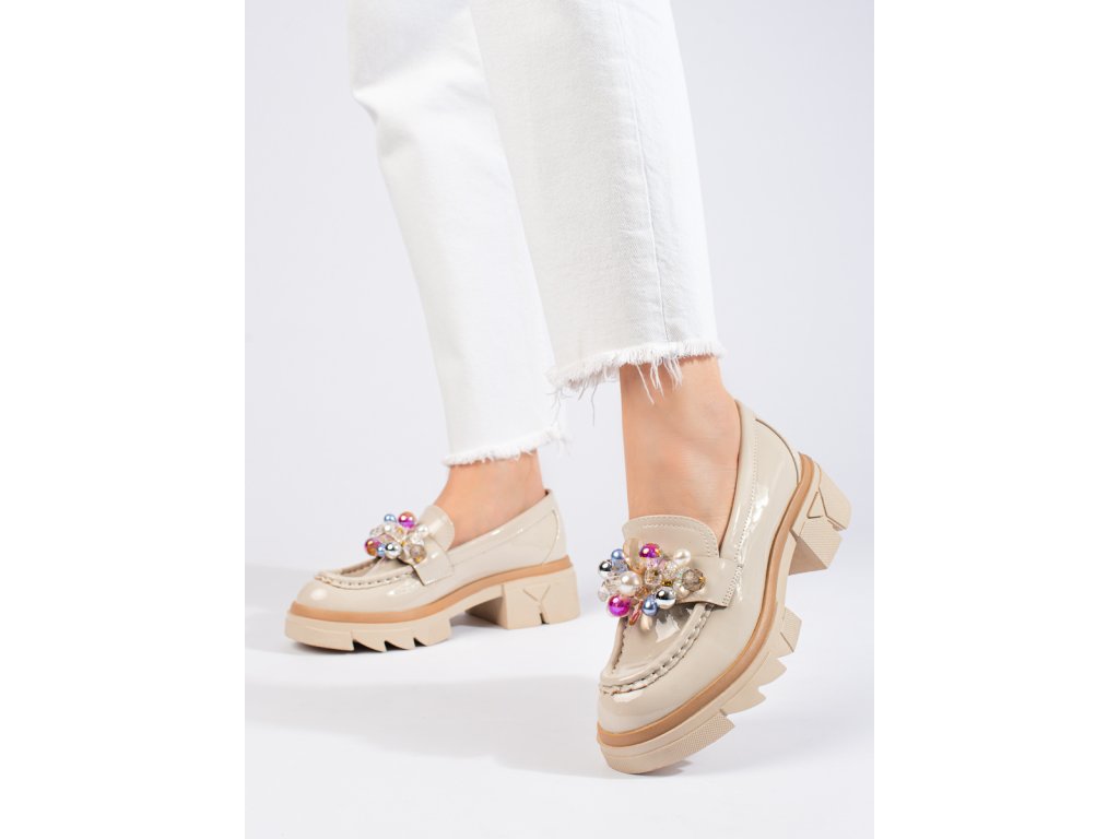 Dámské béžové lakované boty se silnou podrážkou Shelovet