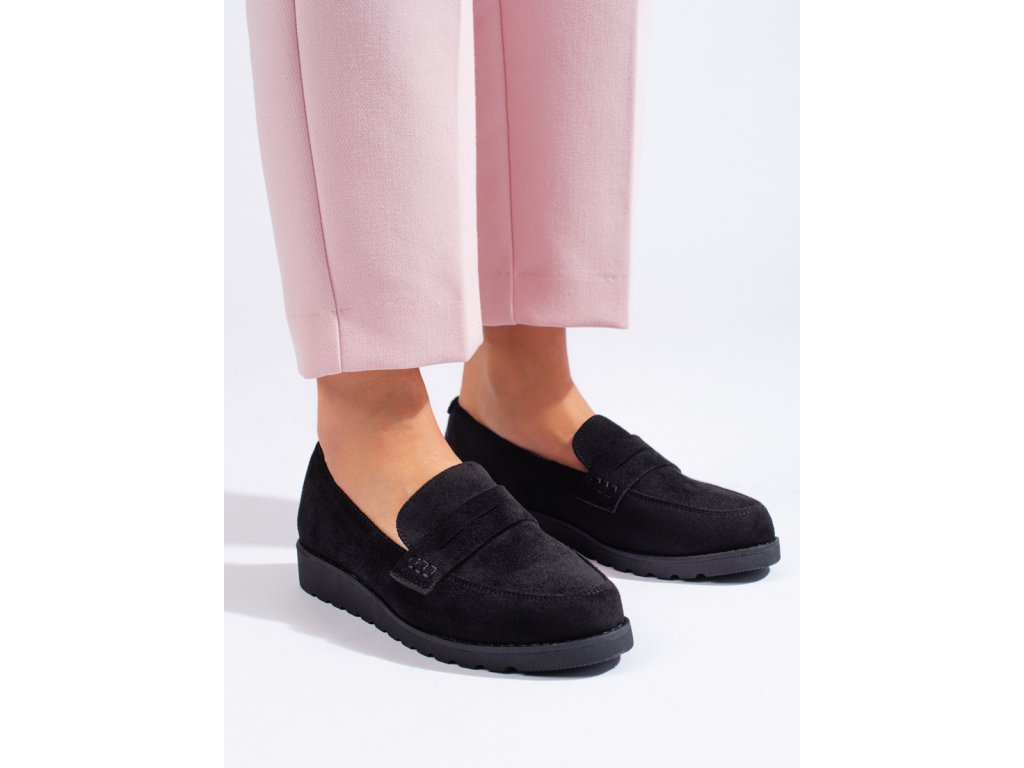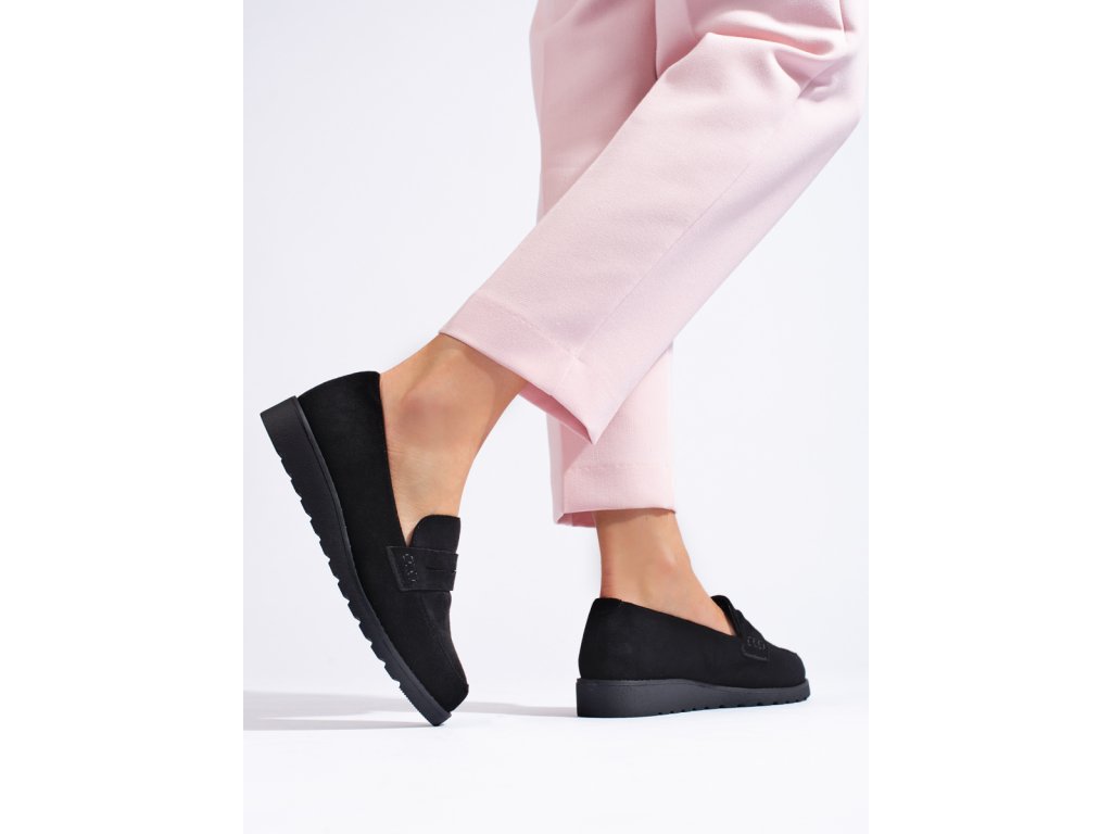 Klasické černé semišové polobotky dámské