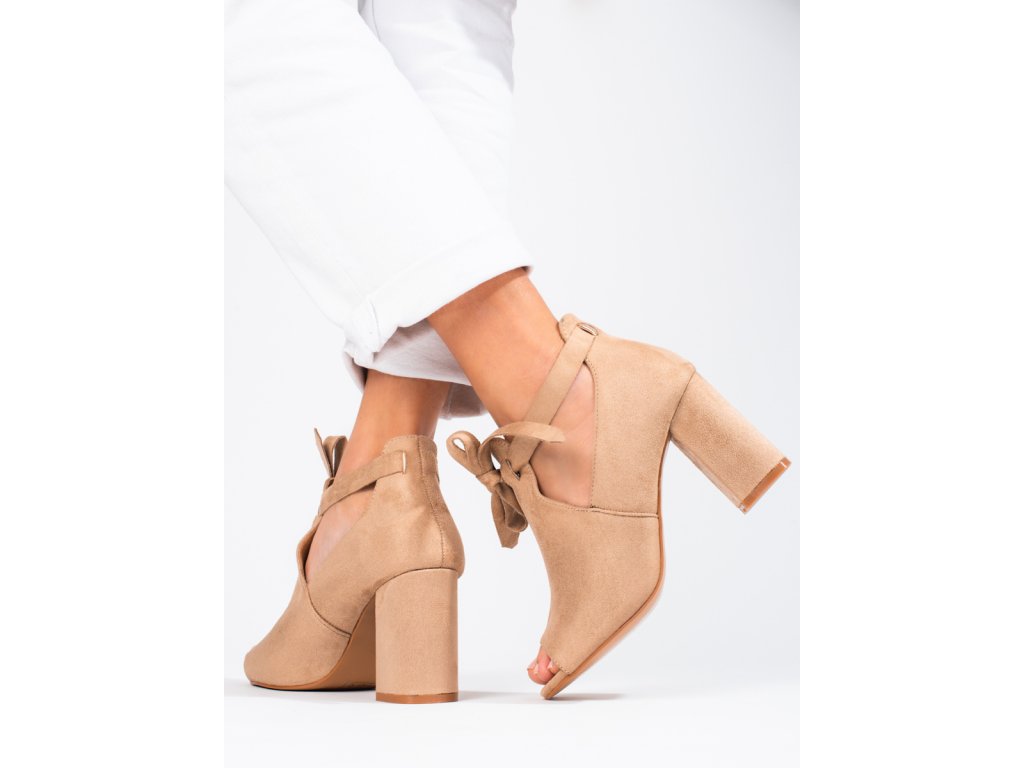 Jarní dámské semišové boty na sloupku Potocki béžové