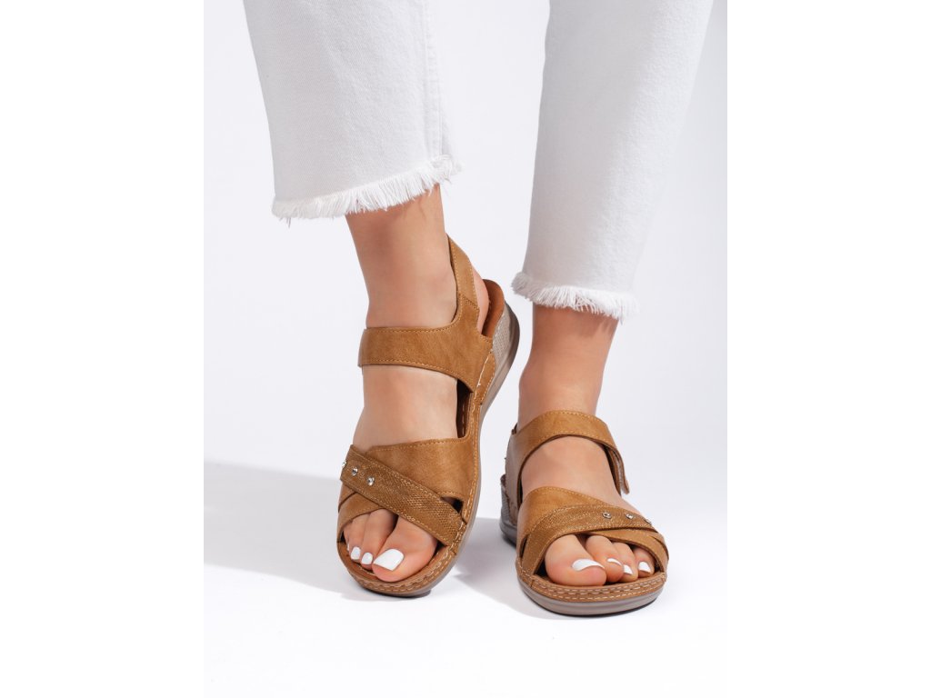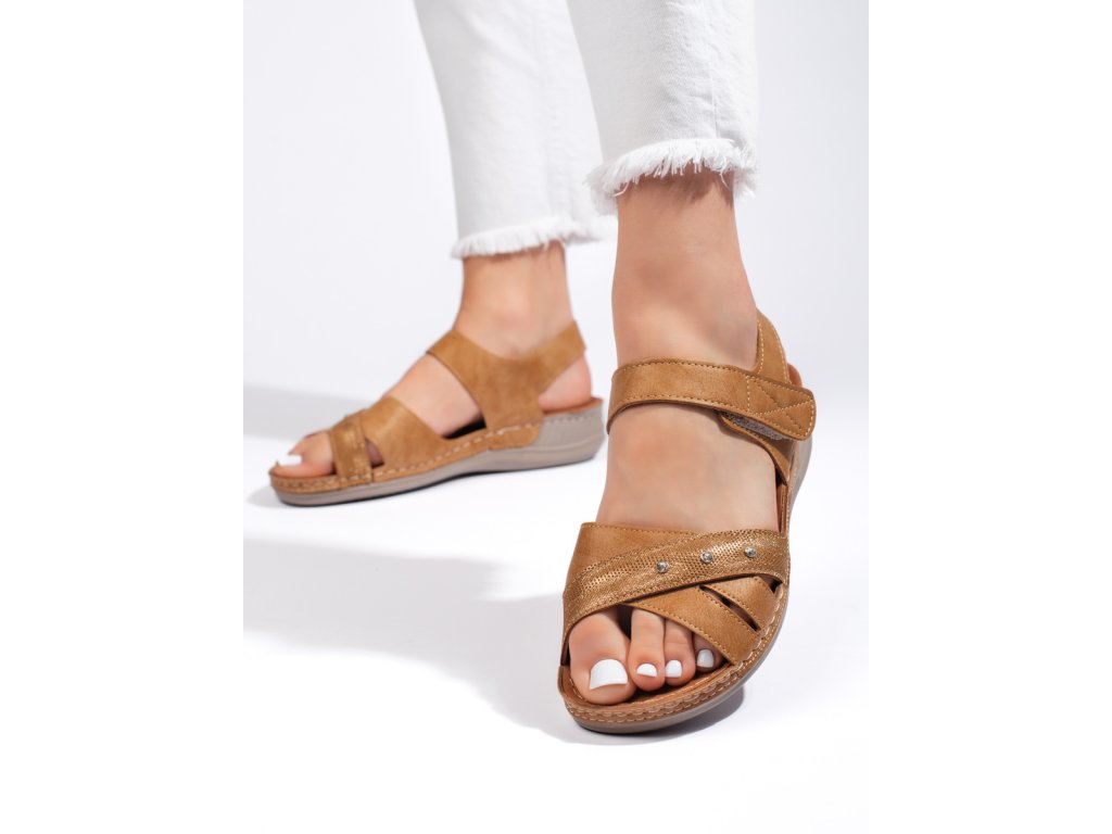 Lehké dámské sandály na platformě camel