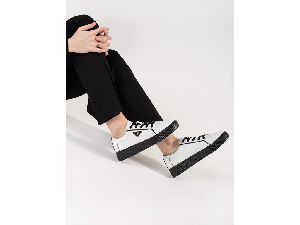 Kožené bílo-černé sneakersy na hrubé podrážce