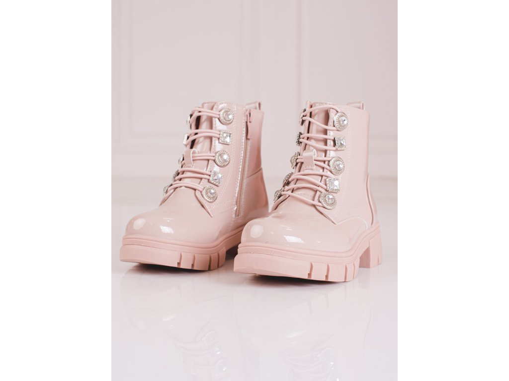 Šněrovací kotníkové boty s růžovými ozdobami Shelovet dívčí