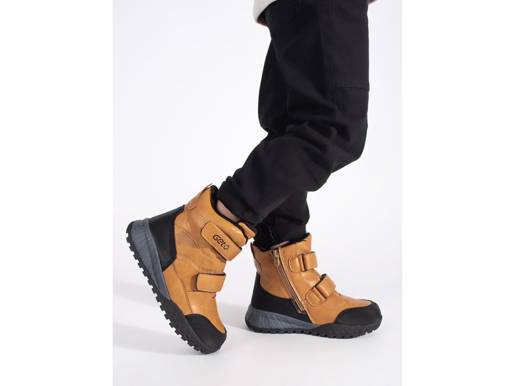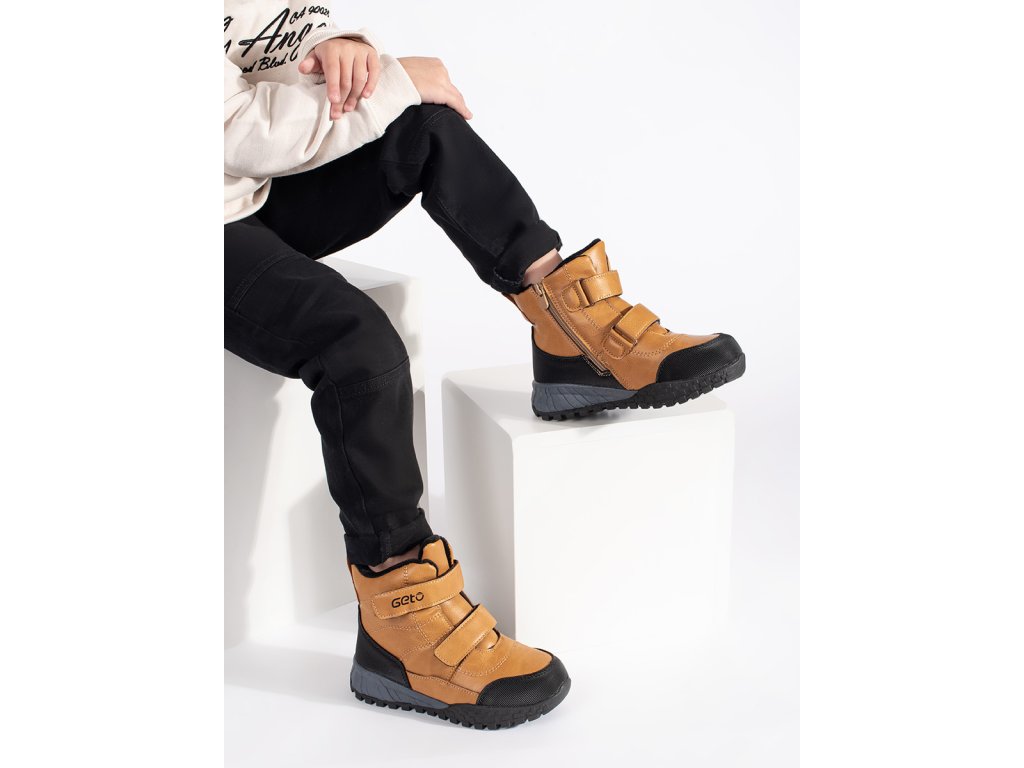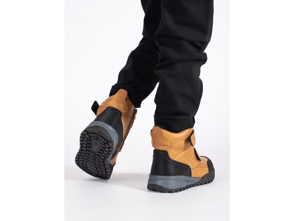 Zateplené chlapecké camelové kotníkové boty na suchý zip
