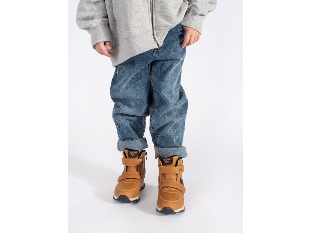 Zateplené chlapecké camelové kotníkové boty na suchý zip