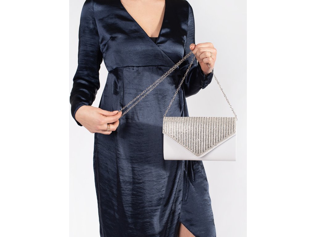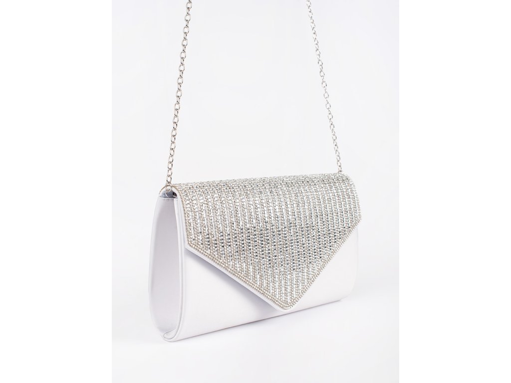 Malá stříbrná listová kabelka zdobená krystalky