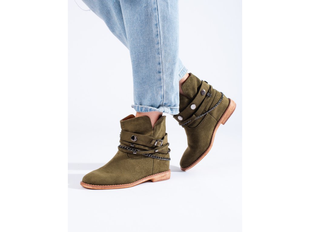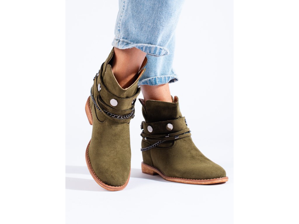 Dámské semišové kotníkové boty kovbojky na klínku Shelovet zelené