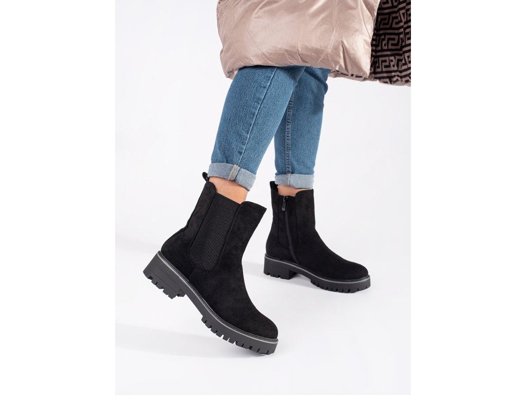 Černé ploché semišové kotníkové boty s částečně elastickým svrškem
