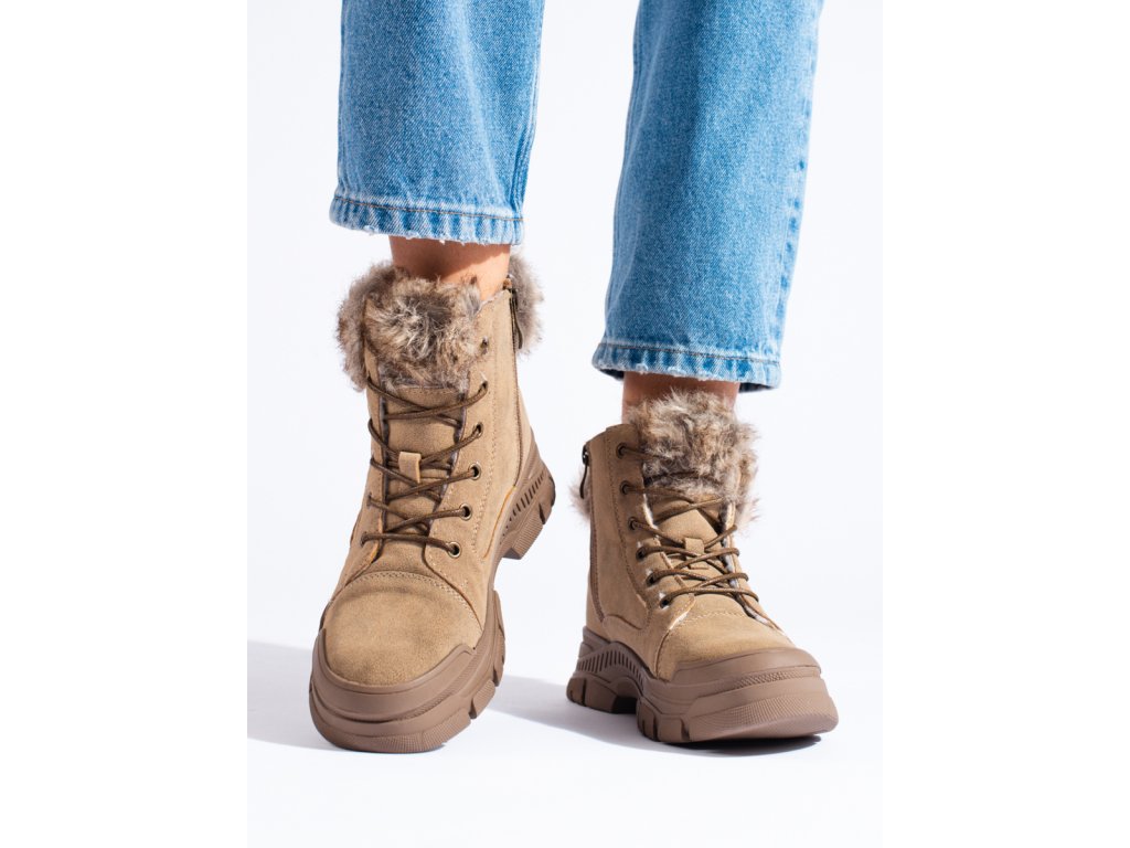 Hnědé dámské kotníkové boty s kožíškem Shelovet