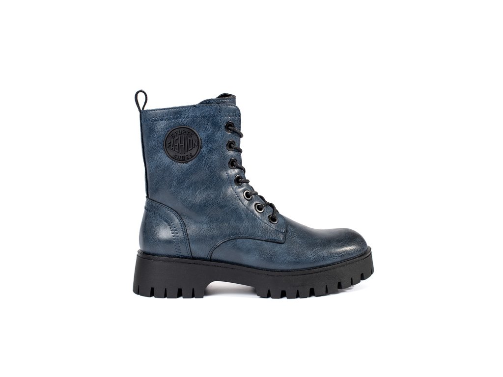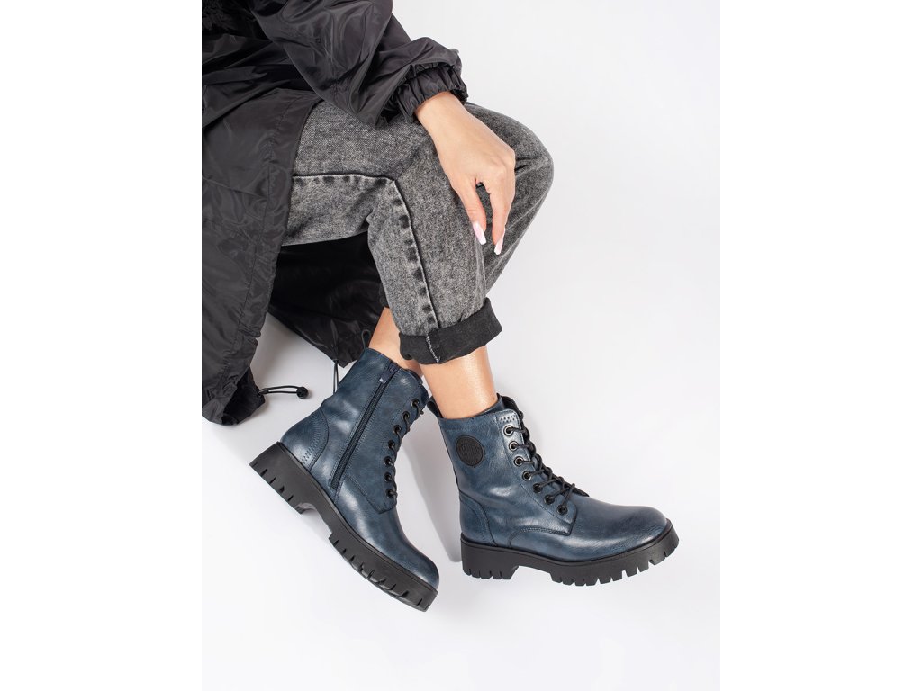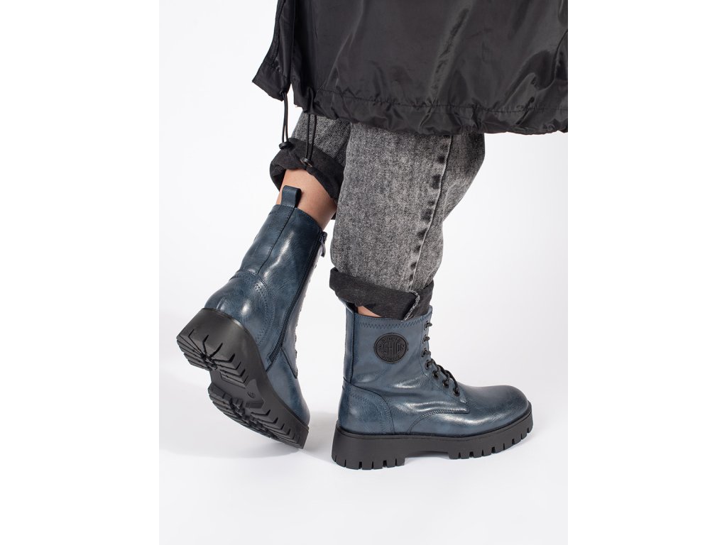 Tmavě modré šněrovací kožené dámské kotníkové boty na platformě Sergio Leone