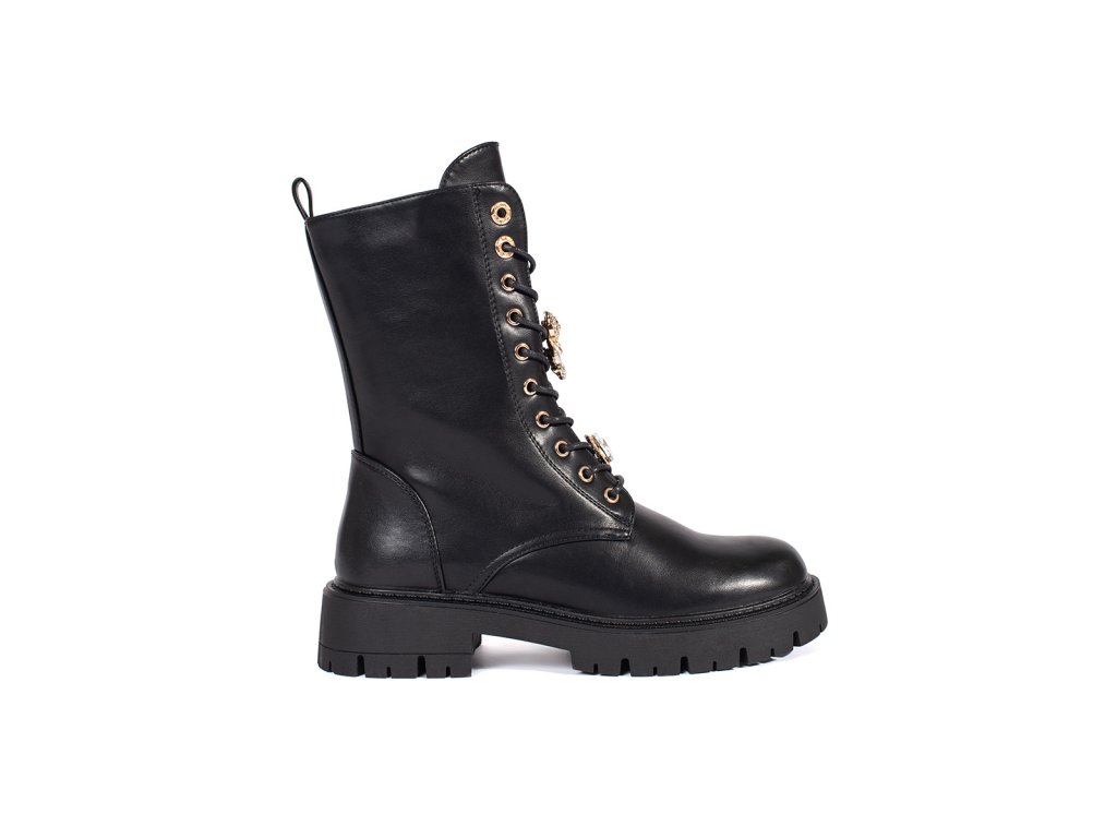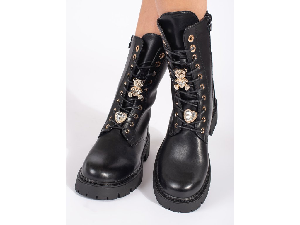 Černé šněrovací kotníkové boty workery na platformě s ozdobami
